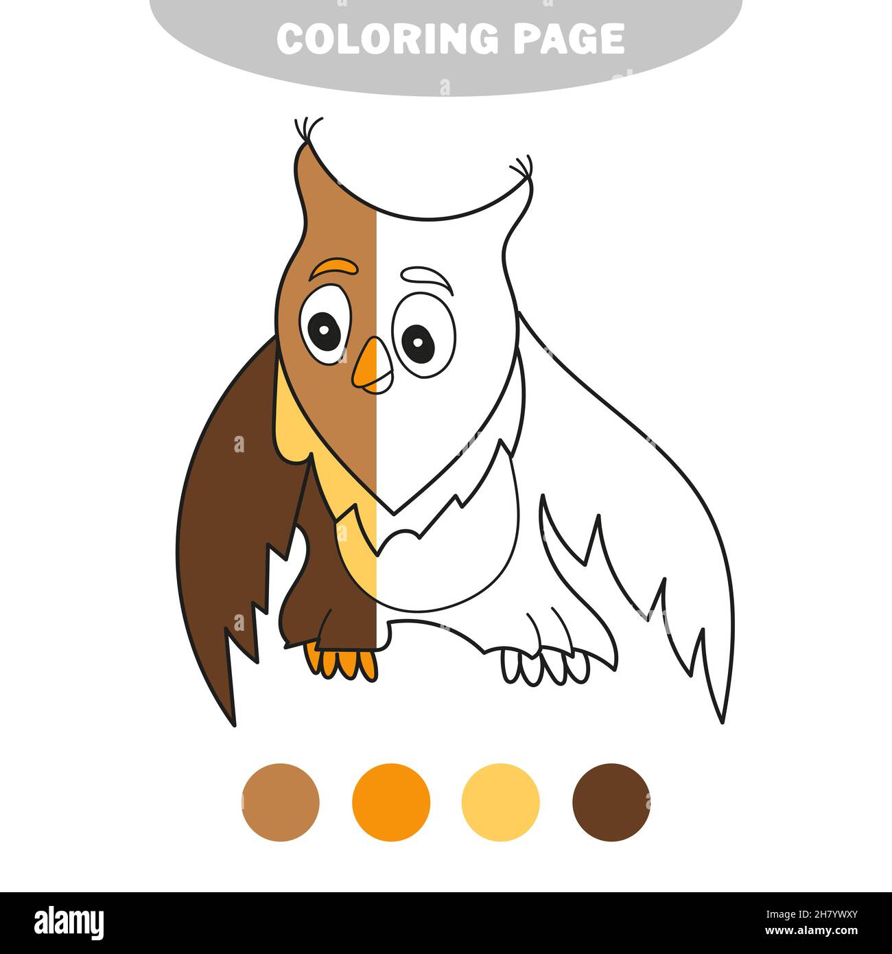 Simple Coloring Page Colorless Funny Cartoon Owl Vector Illustration Coloring Page Preschool Education Half Painted Picture With Color Samples Stock Vector Image Art Alamy